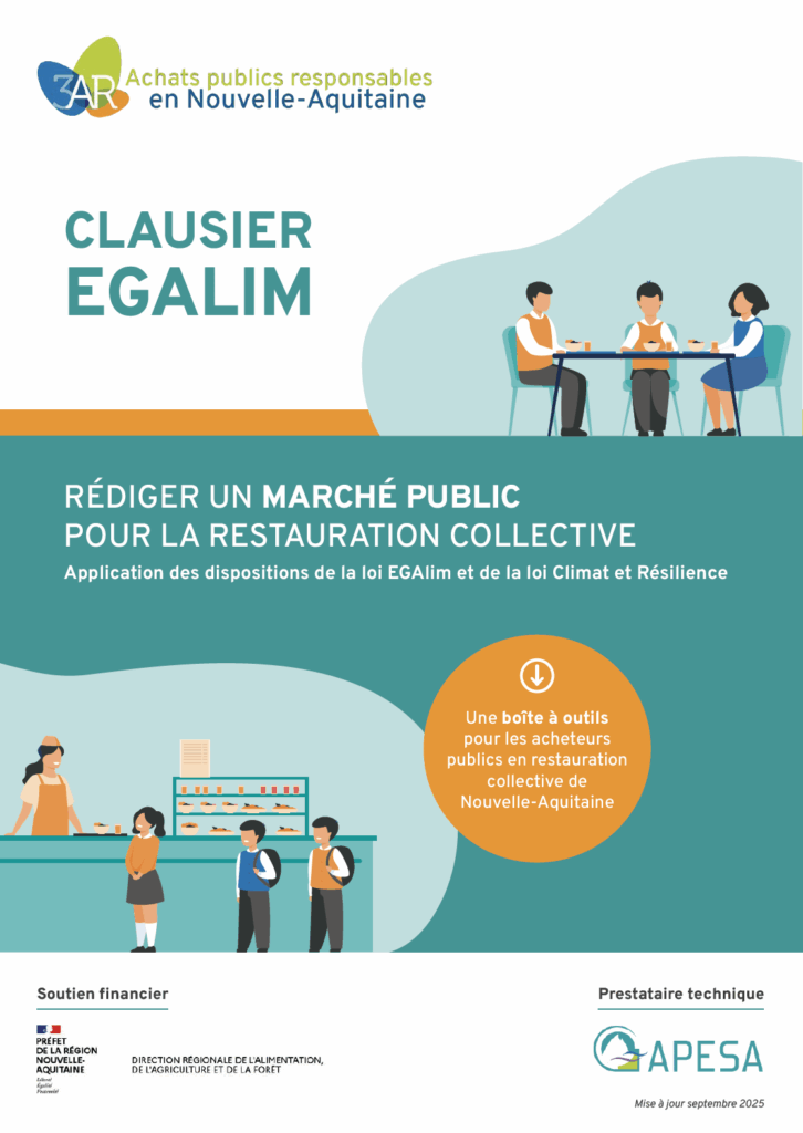 Grâce au soutien de la DRAAF Nouvelle-Aquitaine, le réseau 3AR vous présente un nouvel outil à destination des acheteurs publics en restauration collective : le clausier régional EGALIM !